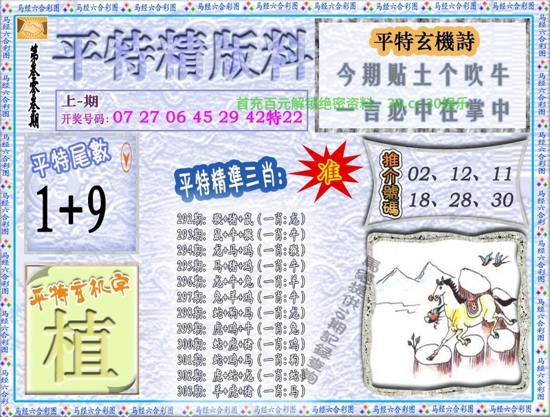 | 306期七尾中特【0134578尾】开:牛17准 |